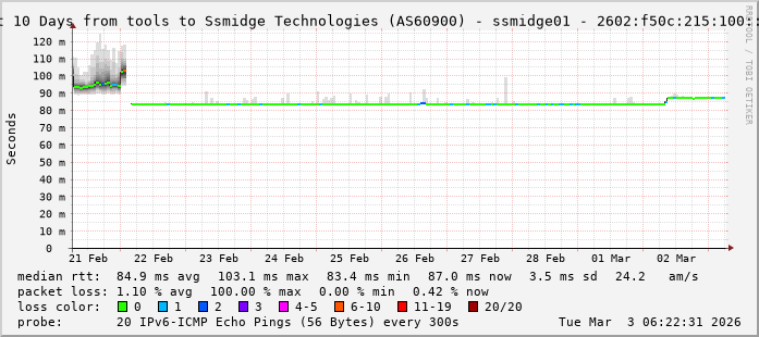 Ssmidge Technologies (AS60900) - ssmidge01 - 2602:f50c:215:100::100