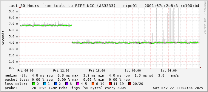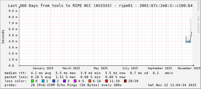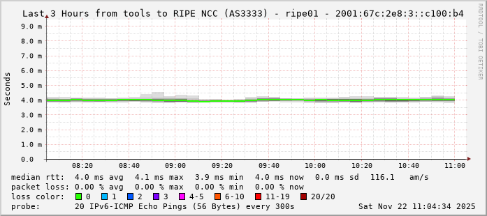 RIPE NCC (AS3333) - ripe01 - 2001:67c:2e8:3::c100:b4